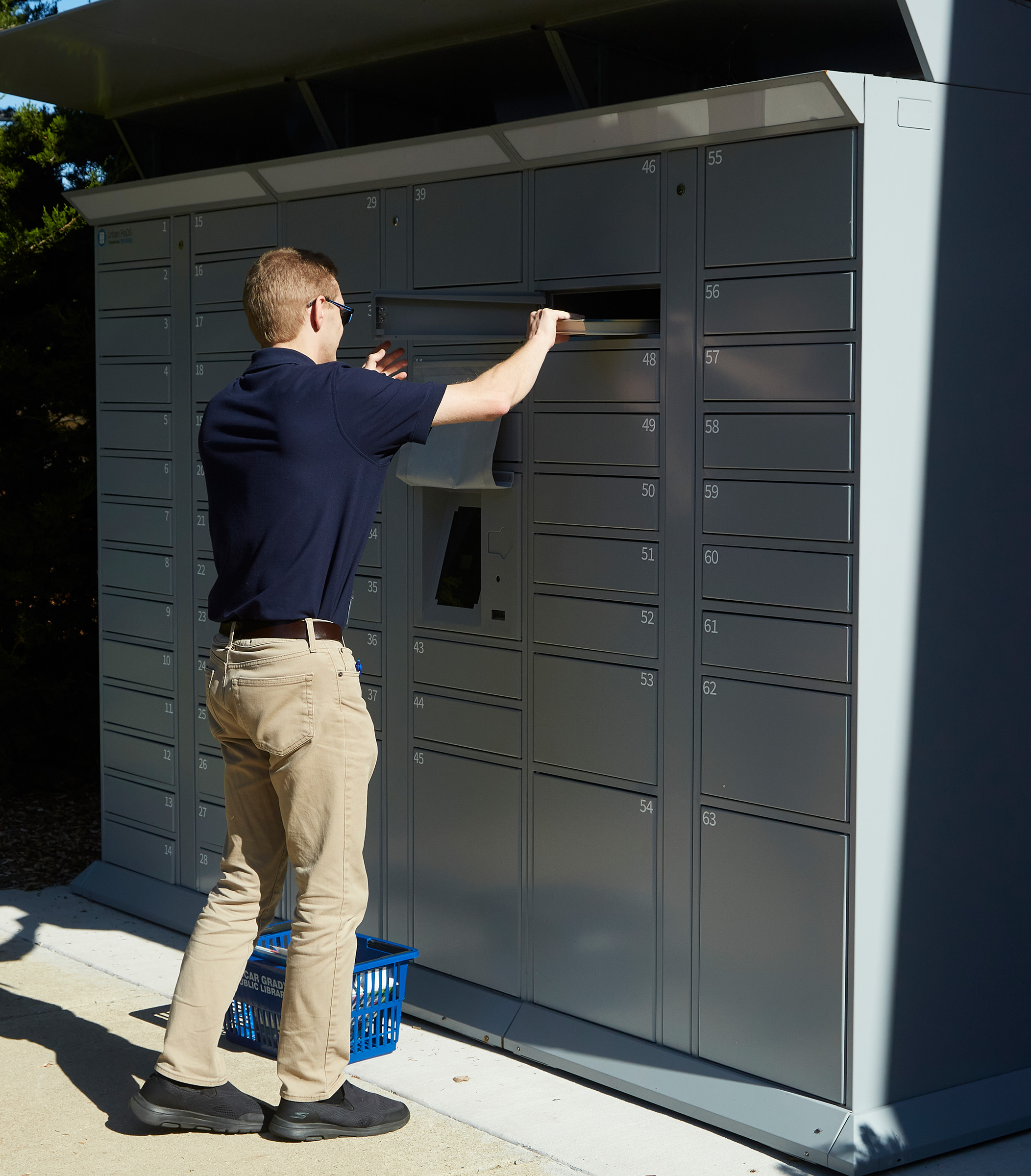 Material pick-up is available 24/7 through the outdoor locker system.